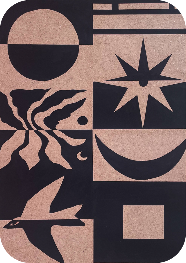 Cette peinture est réalisée à la main, sur panneaux MDF soigneusement sélectionnés par le Studio Lunema, dans une démarche de réemploi et de valorisation de matériaux délaissés.