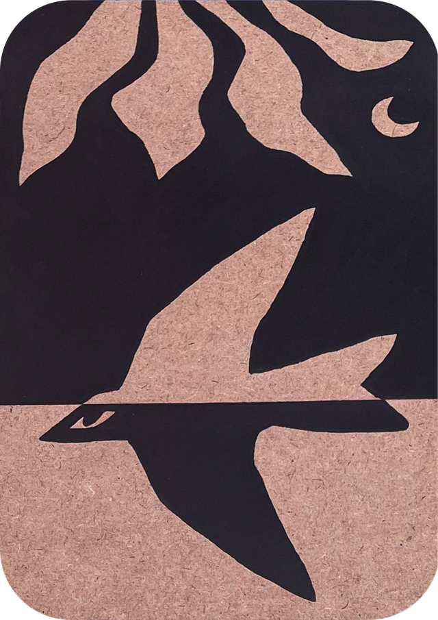 Osmose évoque un dialogue silencieux entre le plein et le vide, où l’oiseau devient symbole de liberté et d’équilibre, invitant à la contemplation et à l’apaisement.
